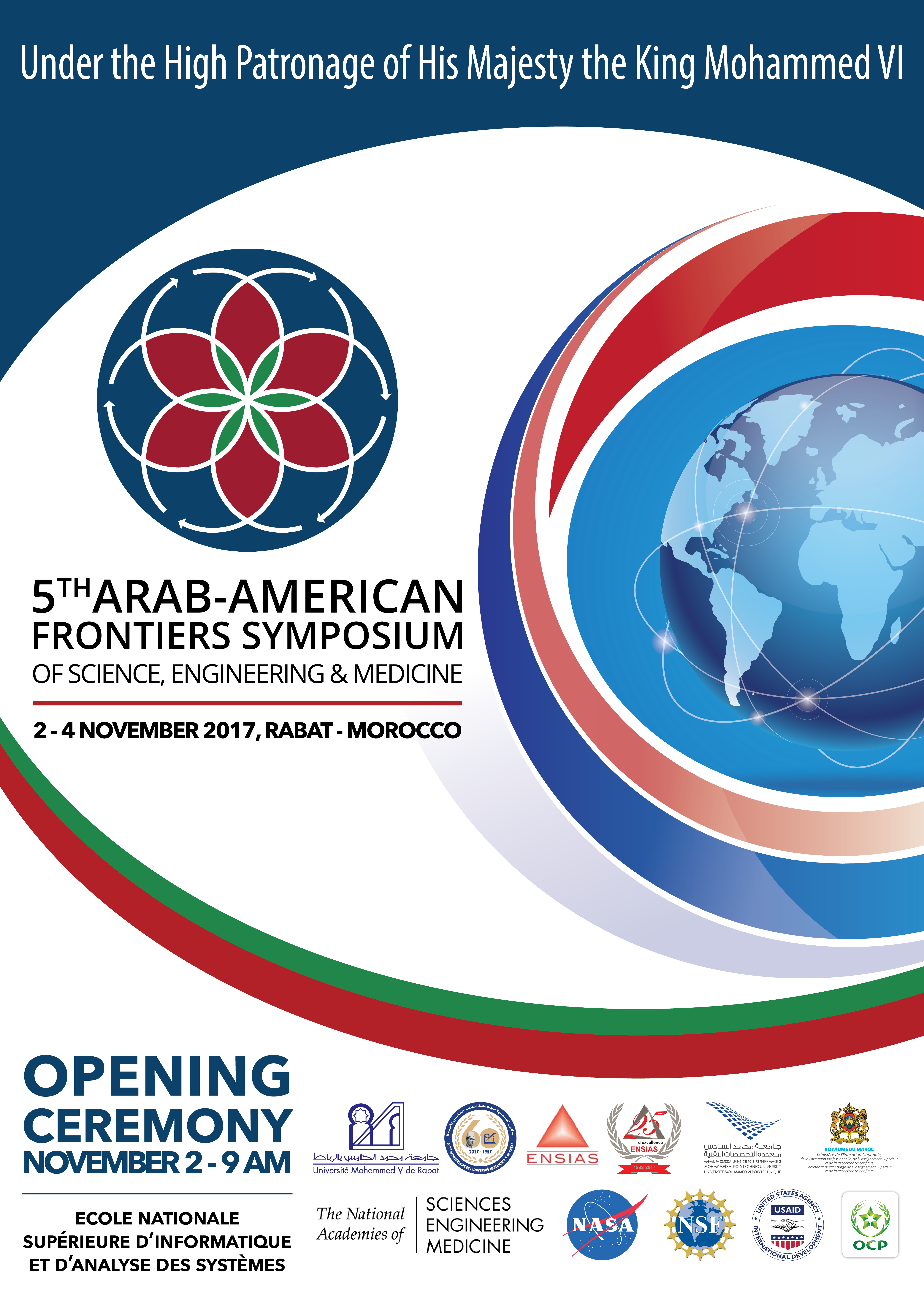 Sous le haut patronage de SM le Roi Mohammed VI que Dieu l’assiste la ville de Rabat et très particulièrement ; l’Ecole Nationale Supérieure d’Informatique et d’Analyse des Systèmes (ENSIAS) relevant de l’Université Mohammed V de Rabat (UM5) accueillera le cinquième symposium Arabo-américaines sur les Frontières des Sciences, Ingénierie et Médecine du 2 au 4 novembre 2017.