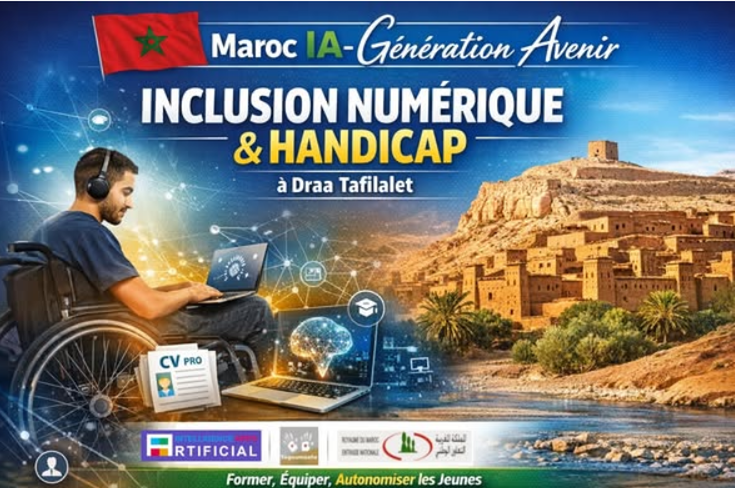 Dans le cadre de la dynamique nationale de transformation numérique et conformément aux Hautes Orientations de Sa Majesté le Roi Mohammed VI, que Dieu L’assiste, l’Association Orphelins Handicap Pauvreté Tagoumaste, en partenariat avec la startup Artificial Intelligence Apps, a lancé le programme Maroc IA – Génération Avenir dans la région de Draa Tafilalet.