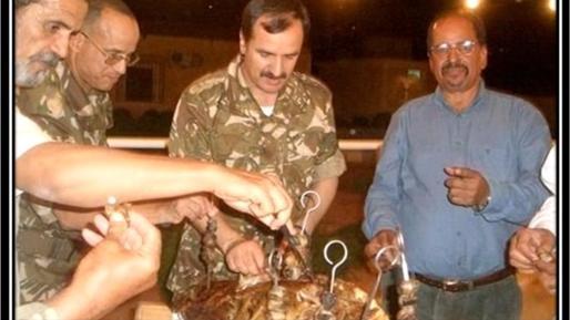 C’est assurément de ce peuple que le polisario fait allusion dans sa lettre pour ne pas perdre ce fonds de commerce très lucratif qui perdure depuis 40 ans. Une hypothèse validée. La photo jointe au présent article, montrant le chef de bande terroriste polisarien mohamed Abdelaziz et des officiers algériens du DRS se pourléchant les babines autour d’un méchoui sur le dos des séquestrés sahraouis de Tindouf après une de leurs nombreuses rapines, est forte éloquente.