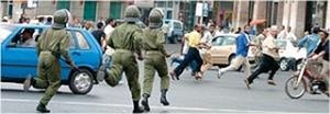 وأمام احتجاج السائقين الذين تعذر عليهم مواصلة السير، مستعملين منبهات سياراتهم، نشبت معركة غير متكافئة بين المحتجين وعناصر الأمن، أصيب خلالها عدد من العاطلين اصابات خفيفة، بينما سقطت بعض المحتجات ارضا بعدما اغمي عليهن. في هذه الاثناء ظهر وسط الشارع شابان مكفوفان يحملان صندوقا من الورق المقوى (الكارتون) كتب عليه: «نحن المكفوفين من خريجي الجامعات نطلب منكم مساعدة مالية من أجل سد الرمق، ولكم جزيل الشك