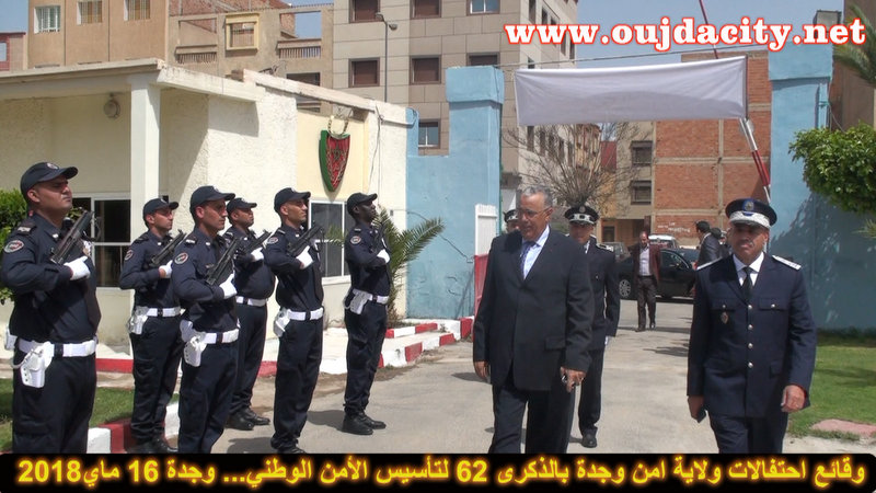 كما هي العادة احتفلت ولاية امن وجدة صباح يوم الاربعاء 16 ماي 2018 بالذكرى 62 لتأسيس الأمن الوطني ، بحضور والي جهة الشرق عامل عمالة وجدة أنجاد، و نائب الوكيل العام للملك، قائد الحامية العسكرية بوجدة ، القائد الجهوي للدرك الملكي، المدير الجهوي لإدارة مراقبة التراب الوطني، القائد الجهوي للقوات المساعدة، القائد الجهوي للوقاية المدنية، رؤساء المصالح الخارجية، عائلات و أسر و أرامل أسرة الأمن و متقاعديها،