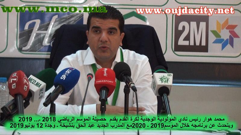 في لقاء صحفي محمد هوار رئيس المولودية الوجدية …يقدم عبد الحق بنشيخة كمدرب جديد للسندباد VIDEO …