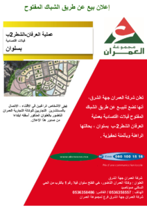 Home»شركة العمران جهة الشرق : اعلان بيع عن طريق الشباك المفتوح ـ عملية العرفان ـ الشطر 2 ب ـ فيلات اقتصادية بسلوان»112020-12-03/ 03/12/2020/0/ 850SharesFacebookTwitterPinterestGoogle+ Loading...Dans le même sujetفي نفس الموضوع