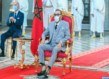 Sa Majesté le Roi Mohammed VI, que Dieu L’assiste, a présidé, ce lundi 5 juillet 2021 au Palais Royal de Fès, la cérémonie de lancement et de signature de conventions relatives au projet de fabrication et de mise en seringue au Maroc du vaccin anti-Covid19 et autres vaccins.