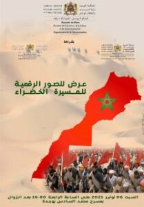 تنظم المديرية الجهوية للقطاع التواصل بشراكة مع المديرية الجهوية للثقافة والمديرية الجهوية للشباب عرضا للصور الرقمية للمسيرة الخضراء ، وذلك يوم السبت 6 نونبر 2021 على الساعة الرابعة بعد الزوال بمسرح محمد السادس
