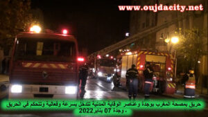 شب حريق مساء يوم الجمعة 7يناير 2022 حوالي الساعة التاسعة ليلا باحد مكاتب الأطباء بالطابق السفلي لمصحة المغرب بوجدة
