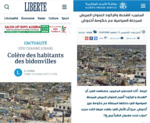 وتعود الصورة لمقال كتبه الصحفي الجزائري د. لوكيل تحدث عن احتجاجات حي صفيحي بسيدي شهمي بولاية وهران بالجزائر، تم نشره في 18 أكتوبر 2021 بجريدة « ليبيرتي » الجزائرية الناطقة بالفرنسية تحت عنوان » غضب سكان مدن الصفيح »، جاء فيه :