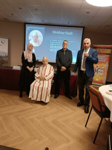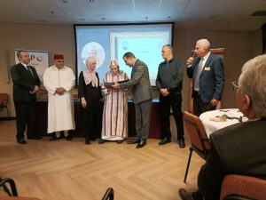 اختتم اللقاء بتكريم أحد المسنين من الجيل الأول وهوالسيد الحاج السعيدي المختار، الذي دخل الى هولندا سنة 1964 . متزوج و له 7 أبناء .من بينهم الفاعل الجمعوي وعضو نقابة المسنين المغاربة في هولندا السيد محمد السعيدي، واخته يمينة السعيدي الموظفة بوزارة البنية التحتية والماء بهولندا ورئيسة جمعية تيسير الخيرية . حيث قامت بمشاريع مختلفة في المغرب، سواء اثناء الفيضانات التي عرفتها مدينة كولميم في السنوات الأخيرة ،حيث هيأت لها بلدية أكادير مجموعة من الشاحنات لنقل الخيام والمؤونة للمتضررين بحضورالسيد أخنوش ووالي الجهة ومسؤولين آخرين .كما أنها ساعدت الكثير من الفقراء على التكلف بمصاريف العمليات الجراحية المختلفة . وقامت كذلك بترميم بعض المنازل وشراء أخرى لفائدة الفقراء المتضررين اما بسبب سقوط منازلهم أو لطردهم الى الشارع بسبب عدم قدرتهم على الايجار .
