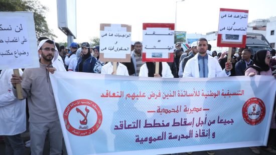 هناك في المقابل آلاف الأساتذة المتعاقدين مازالوا يخوضون منذ حوالي ست سنوات معارك نضالية بشتى السبل المتاحة بغرض تسوية وضعيتهم المقلقة وغير المستقرة نفسيا واجتماعيا. وبصرف النظر عن مدى اتفاقنا أو اختلافنا مع مضامين هذا الملف الشائك، فإننا نرفض بشدة أن تتواصل معركة شد الحبل بين « التنسيقية الوطنية للأساتذة الذين فرض عليهم التعاقد » ووزارة التربية الوطنية، لما للأمر من بالغ الأثر ليس فقط على مستقبل المتعلمين الأبرياء، بل حتى على المنظومة التعليمية ببلادنا.