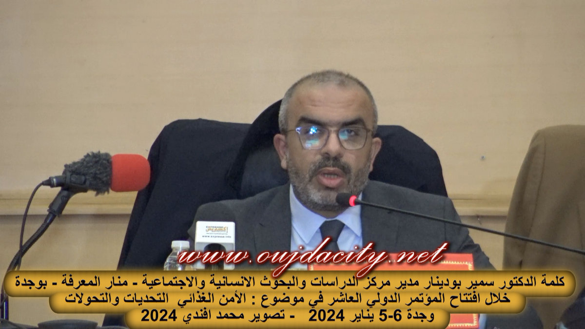 Home»كلمة الدكتور سمير بودينار مدير مركز الدراسات والبحوث الانسانية والاجتماعية بوجدة خلال افتتاح المؤتمر الدولي العاشر حول : الأمن الغذائي التحديات والتحولاتVIDEO»samir_boudinarsamir_boudinar2024-01-07/ 07/01/2024/0/ 710SharesFacebookTwitterPinterestGoogle+ Loading...Dans le même sujetفي نفس الموضوع