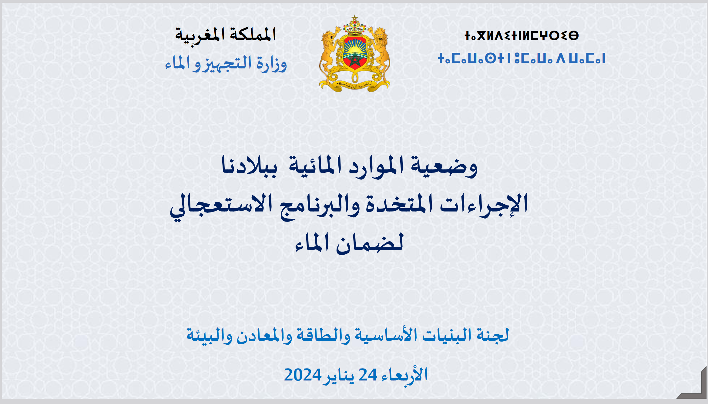Home»وضعية الموارد المائية ببلادنا الإجراءات المتخدة والبرنامج الاستعجالي لضمان الماء»b2b22024-01-30/ 30/01/2024/0/ 560SharesFacebookTwitterPinterestGoogle+ Loading...Dans le même sujetفي نفس الموضوع