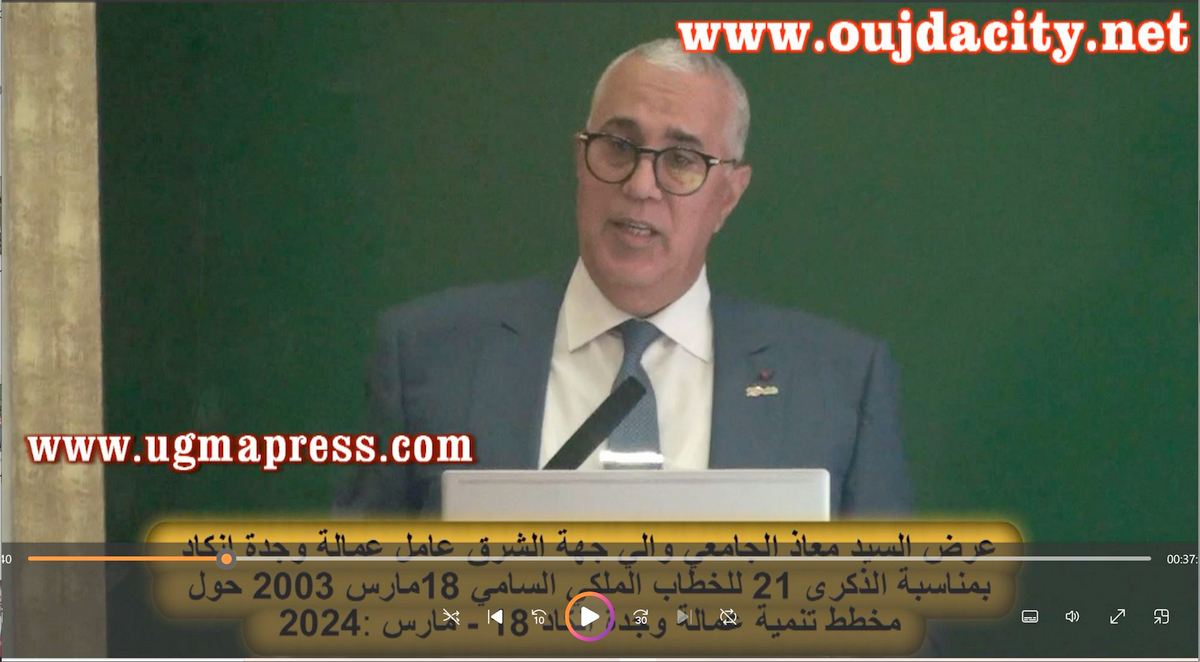 التسجيل الكامل للعرض المفصل الذي قدمه السيد معاذ الجامعي والي ولاية جهة الشرق عامل عمالة وجدة انكاد حول مخطط تنمية عمالة وجدة انكاد VIDEO