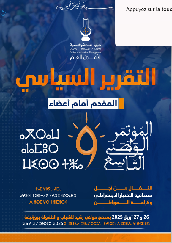 Home»حزب العدالة والتنمية / النص الكامل للتقرير السياسي المقدم امام أعضاء المؤتمر التاسع المنعقد ببوزنيقة ـ الرباط يومي26 و 27 ابريل 2025»pjd_9eme_congrespjd_9eme_congres2025-04-28/ 28/04/2025/0/ 580SharesFacebookTwitterPinterestGoogle+ Loading...Dans le même sujetفي نفس الموضوع