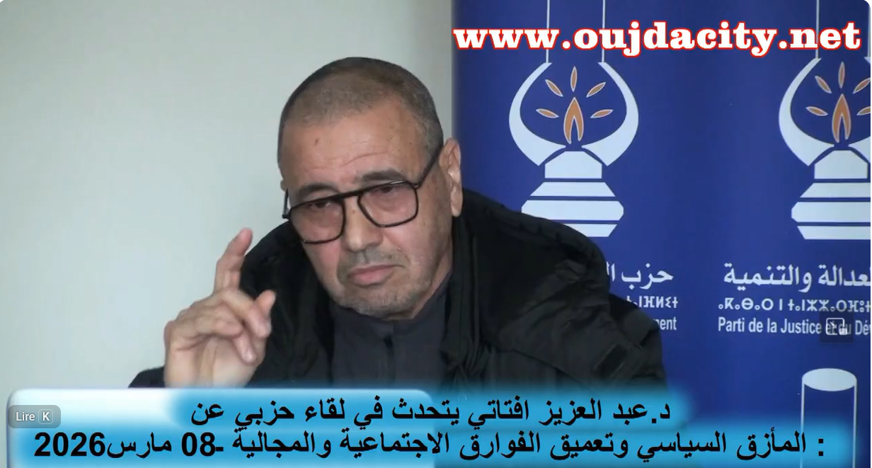 بمدينة وجدة لقاءً تواصليًا سياسياً تحت عنوان “المأزق السياسي وتعميق الفوارق الاجتماعية والمجالية”، وذلك يوم الأحد 18 رمضان 1447 هـ الموافق لـ8 مارس 2026، من تأطير وتقديم الدكتور