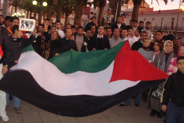 نظمت مساء يوم الاثنين 29 دجنبر 2008  الاحزاب والنقابات والهيئات الديموقراطية بوجدة  وقفة  احتجاجية ضد الهجمة الوحشية الاسرائيلية ، والهمجية الصهيونية التي   ترتكب مجازرها الدموية   ضد شعب قطاع غزة الاعزل ،  حيث يبرهن الكيان الصهيوني انه كياني ارهابي  ، نازي ،  تجاوز كل الاساليب النازية ، اسرائيل التي جندت ترسانتها العسكرية برا وجوا وبحرا ضد  شعب  محاصر اكثر من ثلاث سنوات  لا يملك حتى رغيف خبز ، اسرائيل التي تجسد بهذه الترسانة انها  دولة جبانة ، وان جيوشها  لا تستطيع مواجهة الفدائيين الفلسطينيين برا ، بحيث  تقوم طائراتها  بامطار  المدنيين  بكل انواع القنابل  المحرمة دوليا  ، محرقة اسرائيل لقطاع غزة تتجاوز كل المحارق والمجازر التي عرفها التاريخ ،  وبذلك تكرس اسرائيل  انها دولة ارهابية بكل المعايير ، وبالتالي فان  الشعوب العربية  المنتفضة اليوم  من الخليج الى المحيط لا يمكنها ان تنسى هذه المجازر  المرتكة في حق ابناء الشعب الفلسطيني الطل  الصامد  المرابط ، وان الذاكرة العربية لا يمكنها باي حال من الاحوال ان تغفر للمحتل الاسرائيلي  همجيته ضد شعب أعزل ذنبه انه يطالب بحقه في ارضه ، وفي وطنه …