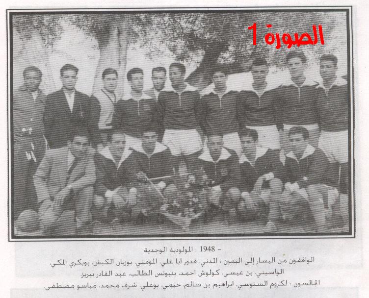تعود بنا الذاكرة الرياصية ـ لكرة القدم الى تاريخ 16 مارس من عام 1946 الموافق لذكرى المولد النبوي 12 ربيع الاول 1365 حيث خرج الى الوجود فريق المولودية الوجدية لكرة القدم ،لتمثيل عاصمة الشرق وجدة ، وسمي الفريق بالمولودية لتزامن التأسيس مع المولد النبوي الشريف.وكان أول من أعطى فكرة الـتأسيس وترأس الفريق هو المرحوم بنشيخ ،لينطلق الفريق نحو مسيرة الـتألق وتشريف المدينة ،وقد احتضن الملعب البلدي الذي يقع وسط حي بودير لقاءات الفريق لأكثر من عقدين من الزمن ،في ذاك الملعب الترابي الأرضية ليومنا هذا حقق الفريق الانجازات والألقاب وفي ذاك الملعب صنفت المولودية مع الفرق الوازنة المرعبة .(انظر الصورة 1+ الصورة2).