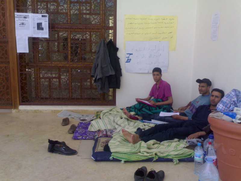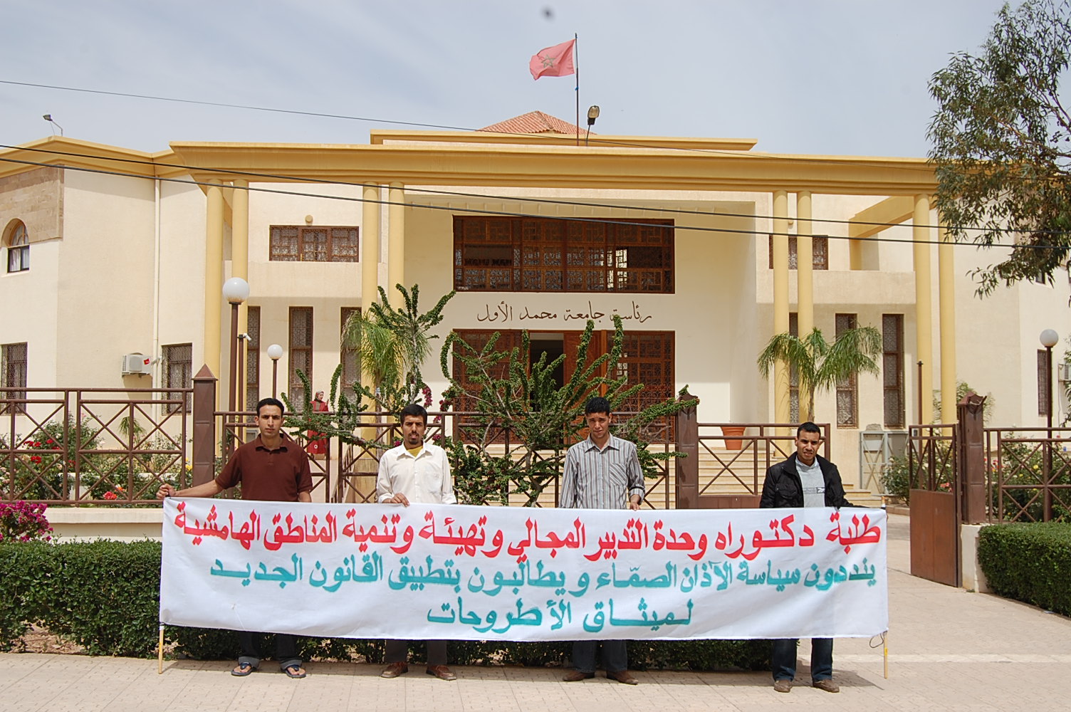 دخل أربعة طلبة من سلك الدكتوراه بكلية الآداب بجامعة محمد الأول في اعتصام مفتوح امام مقر رئاسة الجامعة، وإضراب عن الطعام صباح يوم الجمعة 22 ماي الجاري، تحت شعار « لا لفرض الأساتذة المشرفين بدون أي اتفاق مع الطالب ، نعم لحرية اختيار الطالب للأستاذ المشرف وتفعيل ميثاق الأطروحات »،احتجاجا لإرغامهم على قبول مواضيع أطروحاتهم وتعيين المشرفين عليها ضدا على ميثاق الطروحات…