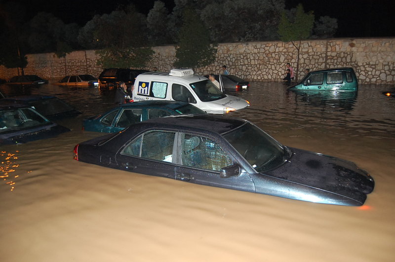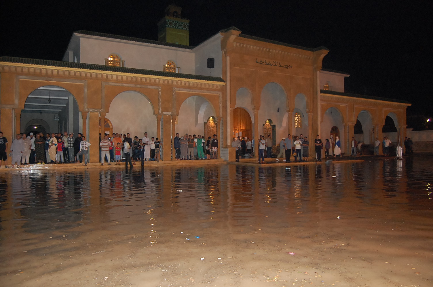 أغرقت مياه الأمطار سيارات المصلين الذين أوقفوها على جانب الرصيف، ولم يكونوا يتصورن أبدا أن الطريق المحيطة بالمسجد يمكن أن تتحول إلى نهر جارف والساحة إلى بحيرة ابتلعت الزرابية والحصير والأحدية، ينظرون مشدوهين عاجزين عن إنقاذها، طريق أنجزت معقوفة وساحة دون مستوى الشوارع المجاورة تستقبل المياه الجارية في ظل انعدام قنوات لصرف المياه، ووصلت عناصر الوقاية المدينة ساعة بعد نهاية الصلاة لضخ المياه عبر شاحنة واحدة، في الوقت الذي كان المواطنون منهم عدد كبير من الأطفال يعملون على مساعدة أصحاب السيارات بدفعها وإخراجها إلى البحيرة، مع الإشارة إلى أن أحدى طرقي الشارع الثنائي مولاي الحسن تحول إلى واد في الوقت الذي ظل الطريق الموازي عكس ذلك.