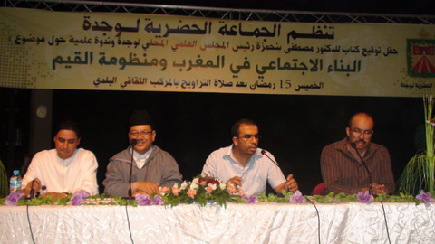 ومن جهته، شدد بدر المقري الأستاذ بكلية الآداب على أن الوازع الديني يمثل سر تماسك البناء الاجتماعي، وأن هذا الوازع ينبغي أن يترجم إلى سلوكات العملية . واستعرض نماذج من الإنجازات الوقفية في تاريخ وجدة أواخر ق19 وبداية ق 20، ومن ذلك أن بعض الأشخاص كانوا يطبعون على نفقتهم بعض أجزاء المصحف ويقومون بتوزيعه مجانا. ثم تحدث عن نموذج كفالة اليتيم و تزويج اليتيمات. و قال بأن الوجديين كانوا يقيمون حفلة (النزاهة) في فصل الربيع في واحة سيدي يحيى للاحتفاء بأنجب طالب علم فيما يشبه سلطان الطلبة. وذكر أن الشيخ ماء العينين أرسل كتبا وقفية من السمارة إلى وجدة عام 1904 ، وكان الوقف دأب الملوك المغاربة. وفي ختام الندوة التي سيرها سمير بودنار رئيس مركز الدراسات والبحوث الإنسانية والاجتماعية ، نظم حفل توقيع بعض الكتب للشيخ بنحمزة. حضر هذا اللقاء كل من والي الجهة الشرقية ورئيس الجماعة الحضرية ومجموعة من المثقفين والوعاظ والخطباء بالمدينة.