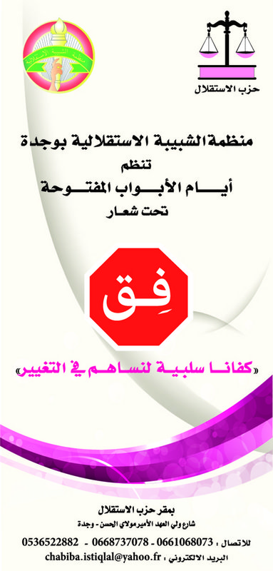 منظمة ألشبيبة الاستقلالية بوجدة تنظم ابوابا مفتوحة تحت شعار : فق كفانا سلبية فلنساهم في التغيير