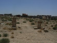 Sur la photo numéro trois, la cimetière dans son état actuel, juste à la droite de ce qui reste de la porte principale, la tombe du conservateur civil, et une vision de ce qui reste du cimetière envahi par la construction, par ces hommes forts de Taourirt qui croient tout pouvoir impunément.