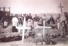 Sur la photo numéro une, on voit bien dans le temps un enterrement chrétien au cimetière chrétien de Taourirt qui en plus constituait le cimetière juif tout en arrière du terrain réservé aux morts. (Le cimetière comprend une trentaine de tombes chrétiennes et une vingtaine de tombes juives)