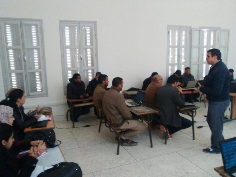 L’école historique Imam Malek de la ville d’Outat El Haj, relevant de la direction provinciale du Ministère de l’Education Nationale et de la Formation Professionnelle de Boulemane, a abrité le 16 mars 2017 une journée d’étude sous le thème : « l’intégration des ressources numériques en classe ». Cette présentation en Powerpoint a été animée par le professeur de l’enseignement primaire et cadre reconnu sur le plan national par sa compétence et son savoir-faire en matière de l’usage de l’outil informatique. Mohamed Kassou, pour ne pas le nommer, est un enseignant dévoué et généreux, qui est venu aujourd’hui de la ville de Missour pour encadrer cette rencontre scientifique.Un parterre d’enseignants a afflué massivement pour prendre part aux travaux de cette rencontre éducative. Le professeur a entamé son exposé par un défi de taille, il a demandé à un participant de se présenter devant la foule et de s’efforcer à mettre sa tête dans une feuille blanche. L’exercice semble ardu et périlleux, mais l’enseignant a fini par déchirer la feuille et à enfoncer sa tête dedans. La morale de ce jeu est que rien n’est impossible devant l’intellect de l’être humain. Il faut juste faire preuve d’imagination et de créativité.L’enseignant a tenu à rappeler que nous vivons de nos jours dans un monde mouvant et en perpétuelle mutation , le monde de la mondialisation et de la génération C : Créer, Communiquer, Collaborer, cet univers requiert de notre part de se doter de nouvelles compétences pour être en mesure de relever les défis de la globalisation et des changements substantiels que connaît le monde qui nous entoure. Parmi ces compétences, le corps professoral est appelé à utiliser d’une façon efficace les technologies de l’information et de la communication. C’est un mal nécessaire, n’hésite pas à souligner monsieur Kassou.