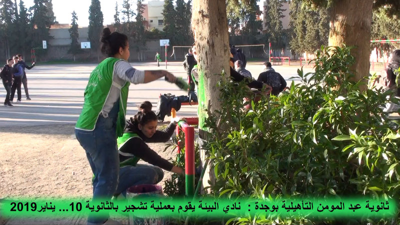 قام نادي البيئة بثانوية عبد المومن التأهيلية بوجدة بتنظيم يوما بيئيا يتمثل في تأهيل فضاء المؤسسة بيئيا ، حيث قام وبشراكة مع المديرية الاقليمية للغابات ومحاربة التصحر بغرس العديد من الأشجار بساحة ، وملعب الرياضة ، وقد اخرط عشرات التلميذات والتلاميذ في هذه العملية بنوع من الحماس الذي يجسد حبهم للمؤسسة من جهة ، وللبيئة من جهة اخرى ،