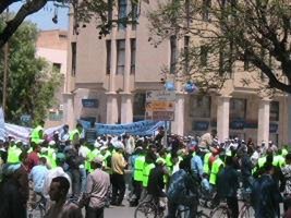 تداخلت العديد من المسيرات العمالية بوجدة والمنضوية تحت بعض النقابات مثل الأتحاد المغربي للشغل ، والأتحاد العام للشاغلين بالمغرب ،والكنفدرالية الديموقراطية للشغل ، والأتحاد الوطني للشغل ، حتى ان رجال الأمن أخذوا يوجهون مسارات هذه المسيرات كي لا تتداخل كما يقومون بتنظيم حركة المرور لا سيما ان المسيرات انطلقت تقريبا في نفس الوقت وكلها تريد ان تمر عبر شارع محمد الخامس ..وهكذا تداخلت الشعارات والتي صبت جام غضبها على الحكومة بالخصوص…" هز وزير حط اوزير لا اصلاح لا تغيير " ".حايوها حايدوها حكومة الشوها " " عليك لامان عليك لامان ، لا حكومة لا برلمان " " العامل جوعتوه والأجنبي شغلتوه " كما ان بعض الشعارات التي كانت تردد خلال سنوات الرصاص ما تزال حية مثل " هما فين هما فين اولاد الشعب المخطوفين " " سوا اليوم سوى غدا الحساب ولابد " " مساء لة ولابد سوى اليوم سوى غدا " ….الى غير ذلك من الشعارات القديمة والحديثة منها …