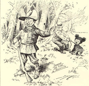 ولكن وأنا أقرأ حياة الرئيس الأمريكي تيدي روزفلت أدركت أن هؤلاء الغربيين لا يتميزون بأي شيء عنا نحن العرب في تعاملنا مع الحيوان، فالرئيس روزفلت تعمد أن يلتقط صورة مع أنثى دب مريضة جرباء عجزت عن الفرار والهرب وهو يحمل بندقيته على أساس أنه رحيم بالحيوانات فانتشرت هذه الصورة كالنار في الهشيم، وبعد بضعة أيام من ذلك تم تخليد الحدث في رسم كاريكاتوري سياسي وقد أظهر الرسم رحمة روزفلت وأنثى الدب بنظرة كأنها تطلب الشفقة التي لقيتها في الرئيس الأمريكي، فكان هذا الحدث العظيم سبب صناعة شركات أمريكا للدمى دبا أسموه الدب تيدي على اسم الرئيس الأمريكي تيدي روزفلت الرفيق بالحيوانات.