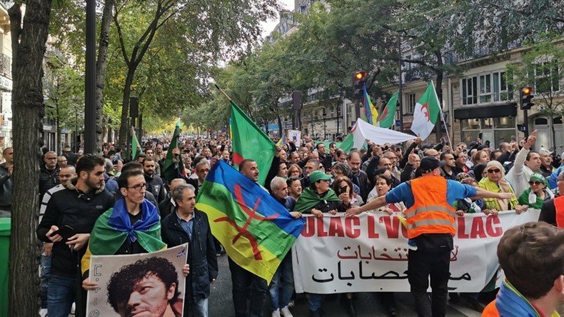 Les manifestants de Paris avaient fermement affiché sans ambiguïté leur opposition à la tenue d’élections Présidentielles le 12 décembre 2019 tout en poussant une énorme cage métallique noire sur roulettes tapissée de photos de prisonniers politiques et dénoncer les nombreuses arrestations perpétrées en Algérie.