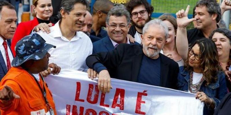 ولدى خروج لولا من السجن بعد احتجازه 19 شهرا بتهمة الرشوة لوح بقبضته في الهواء لأنصاره من حزب العمال الذين لوحوا بالأعلام الحمراء وحملوا لافتات مكتوب عليها « الحرية للولا ».