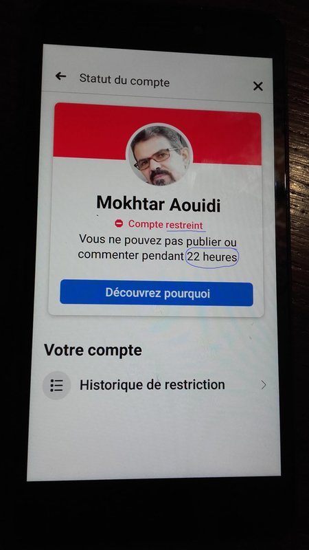 ها قد انتهت عقوبة توقيف حسابي في هذه اللحظة. ولست طامعا أن يسمح حتى لهذه التدوينة، التي هي عبارة عن إخبار عادي بالنشر من دون أن تطالها آلة الحذف والتكميم.