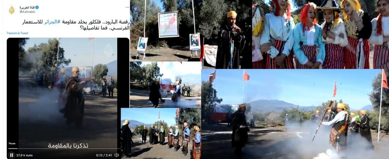خطة النظام العسكري الجزائري الحركي الفرنسي عديم التاريخ مجهول الهوية الفاقد للتراث، والتي تدخل في استراتيجية خبيثة لسلسة من السرقات للبحث عن تاريخ مُزوَّر ومُزيَّف، باتت مفضوحة للعالم، بعد نشر عدد من القنوات والمواقع العربية الخليجية لنفس المقال يتضمن نفس المحتوى أقرب إلى مقال إشهاري مُضلِّل، مؤدى عنه، بمناسبة الاحتفال ما يسمى ب »الذكرى 60 لاستقلال الجزائر »، إذ نجد مقالا بعنوان « قصة البارود.. فولكلور يخلد مقاومة الجزائر للاستعمار الفرنسي/صحافة الجديد (اخبار عربية)، و » »رقصة البارود ».. فولكلور يخلد مقاومة الجزائر للاستعمار الفرنسي/العربي الجديد »، و »رقصة البارود ».. فلكلور جزائري يخلّد مقاومة الاستعمار الفرنسي/عربي بوست/الأناضول »، و » »رقصة البارود ».. فولكلور يخلد مقاومة الجزائر للاستعمار الفرنسي (تقرير)/الجزائر/ الأناضول)…