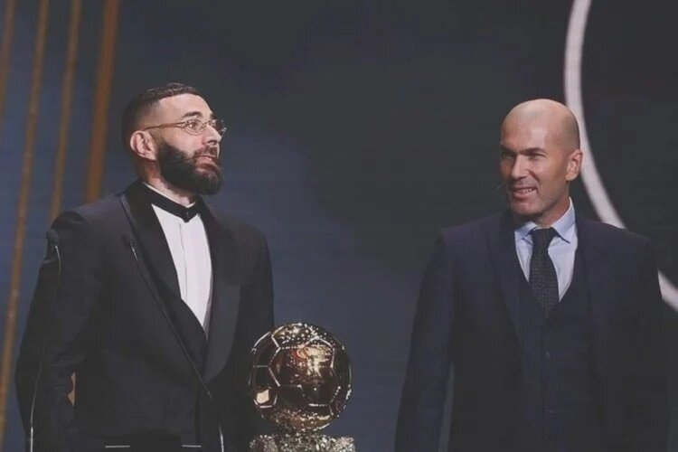 « سلّم زيدان، الذي كان العنصر الأساسي الذي أهدى فرنسا كأس العالم لأول مرة في عام 1998 ، تليها الكرة الذهبية في نفس العام الذي شهد ولادة كيليان مبابي، (سلَّم) الكرة الذهبية، مساء الإثنين 17 أكتوبر 2022، لمواطنه كريم بنزيمة، حدثٌ جعل الرئيس الفرنسي إيمانويل ماكرون يعلّق: « (…) بعد 24 عامًا من زيدان، كريم بنزيمة يهدي الكرة الذهبية إلى فرنسا ».