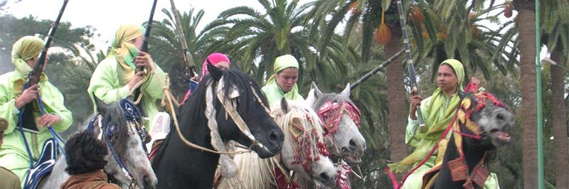“moussem”, fêtes estivales qui célèbrent la mousson. Chaque chevauchée se termine par une décharge de fusils à