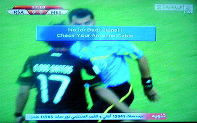 بعد فوز قناة الجزيرة بصفقة نقل مباريات كأس العالم ، وخلال النقل المباشر لمباراة الافتتاح والتي جمعت منتخب جنوب افريقيا والمكسيك ، فوجيء المشاهدون المهووسون بكرة القدم بكتابة عبارة تنويه من طرف قناة الجزيرة تحث المشاهدين على متابعة المباراة بشكل افضل على ترددات القمر الصناعي » عرب سات » في اشارة الى تداخلات ومحاولات تشويش من اطراف مجهولة …