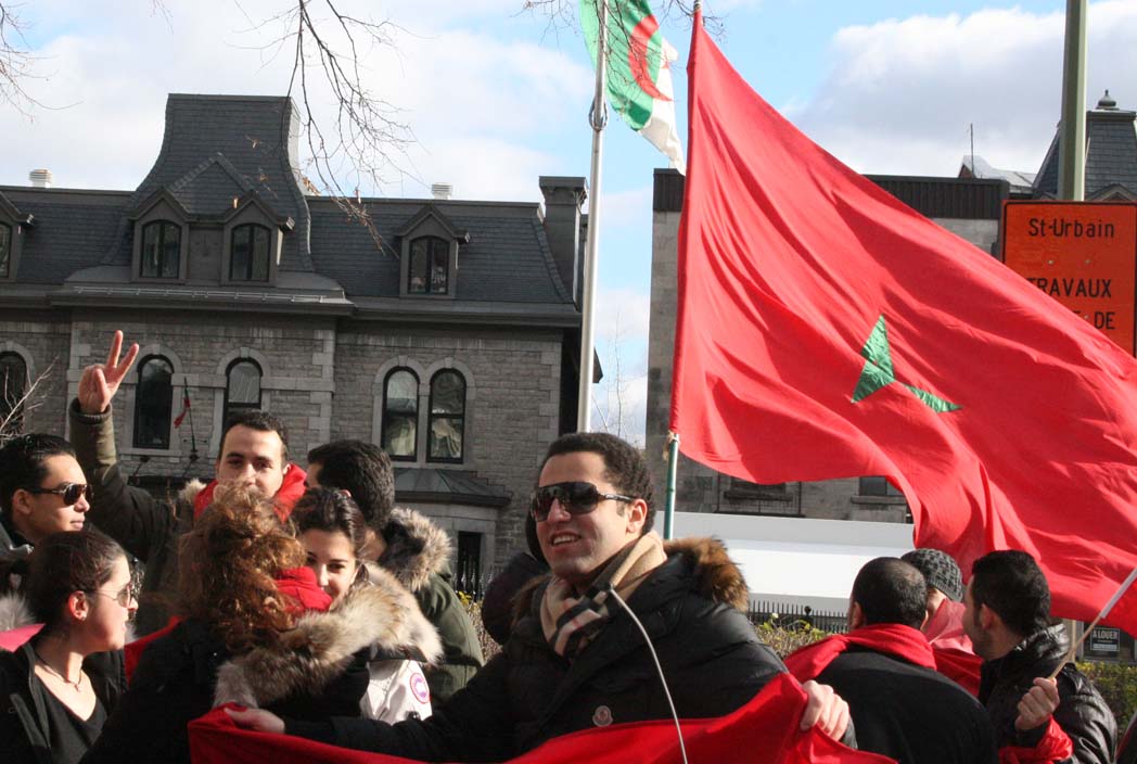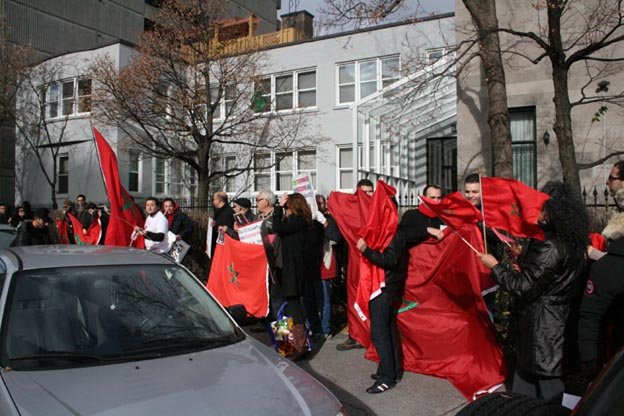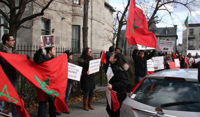 Montréal -MCE le 20-11-2010.- Un groupe d’étudiants, auquel se sont joints certains québécois d’origine marocaine, ont organisé un rassemblement pacifique devant le Consulat général d’Algérie, pour dénoncer l’alignement des médias algériens et espagnols sur la thèse du POLISARIO, lors des événements dramatiques de Laâyoune où ont péri 11 membres des forces de l’ordre ainsi que deux civils.