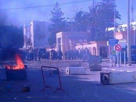 وقال شهود عيان لرويترز ان شرارة المواجهات اندلعت يوم السبت بين مئات الشبان وقوات الامن وتواصلت يوم الاحد بوسط مدينة سيدي بوزيد الواقعة على بعد 210 كيلومترات جنوب غربي العاصمة تونس بعد ان اقدم شاب من المدينة على حرق نفسه احتجاجا على ظروفة الاجتماعية المتردية.