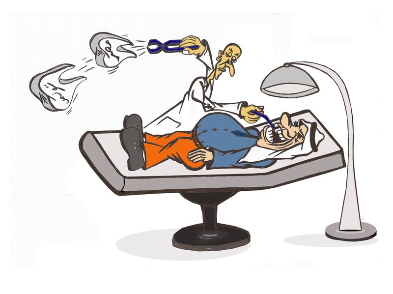 كاريكاتير معبر ولكن على طبيب الاسنان ان يزيل فقط الاسنان او الاضراس المسوسة