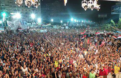 وأضاف العريان أن الاعتصامات يشارك فيها 30 كيانا وحزبا وائتلافا؛ وأن العالم يرى أن الشعب المصري يضحي بأرواحه من أجل القيم. كما قام طبيب من المستشفى الميداني بعمل عرض لما تم استقباله من حالات في المستشفى جراء المجازر على أيام الفترة الماضية.