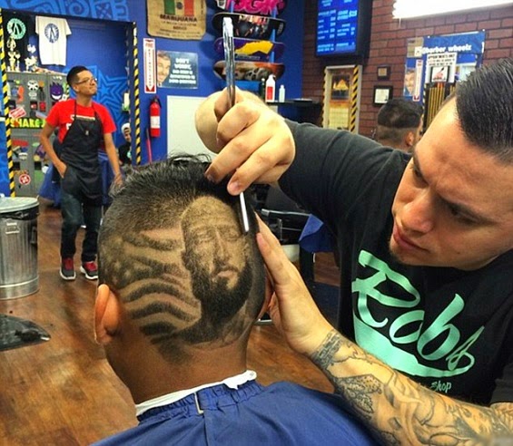 من عجائب المونديال : حلاق يرسم نجوم المونديال على رؤوس زبائنه