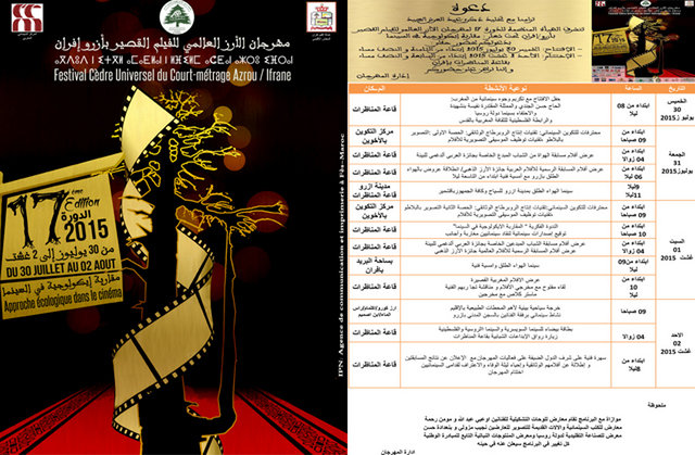 C’est aujourd’hui jeudi 30 juillet 2015 que le coup d’envoi est donné dans la ville d’Ifrane à la 17ème édition du Festival Cèdre universel du court métrage organisé par l’Association Ciné-Club enfance et Jeunesse du 30 juillet au 2 août pour relever le défi culturel et artistique par la création d’une plate-forme d’échange, de dialogue et de communication entre les différents pays participants.