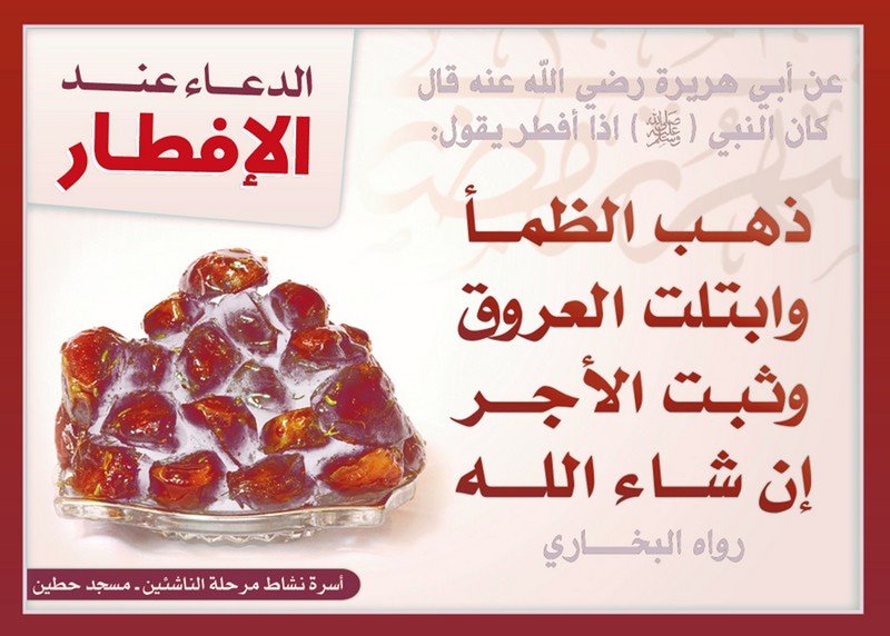 L’image ci-après, illustre comme vous le voyez un lot de délicieuses dattes et un HADITH interprétant la satisfaction chez le jeûneur, dont voici une traduction : « LA SOIF EST PARTIE, LES VEINES SONT HUMECTEES ET LA RECOMPENSE EST CONFIRMEE SI DIEU LE VEUT »