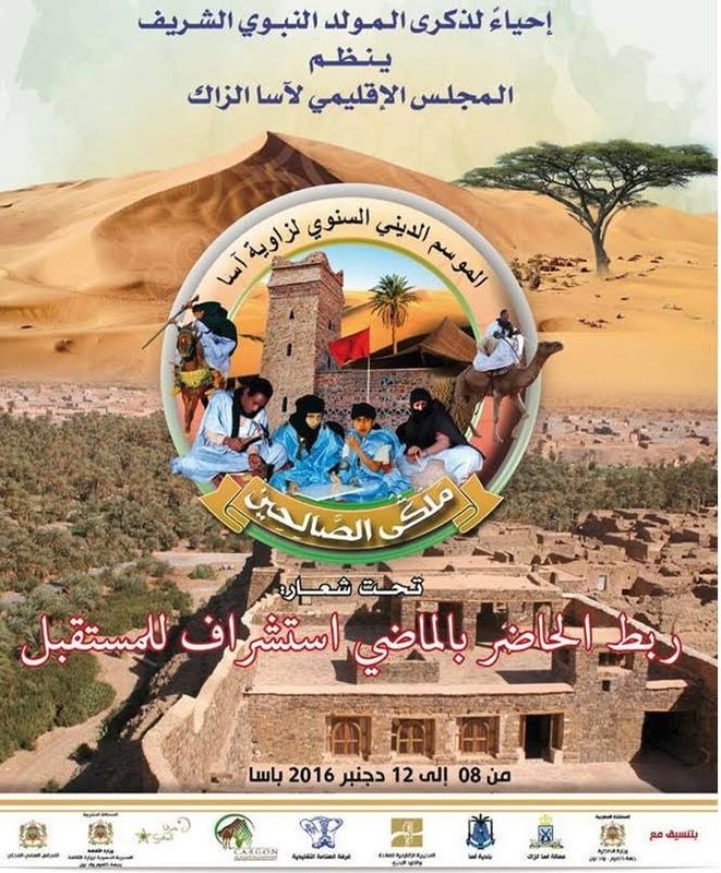 Sous le haut patronage de SM Le Roi Mohammed VI, le Conseil Provincial d’Assa-zag organise le Moussem religieux annuel de la zaouia d’Assa – Malga Assalihine – (province Assa-Zag) et ce, du 08 au 12 décembre 2016 sous le thème de : « Lier le présent au passé pour explorer l’avenir ».