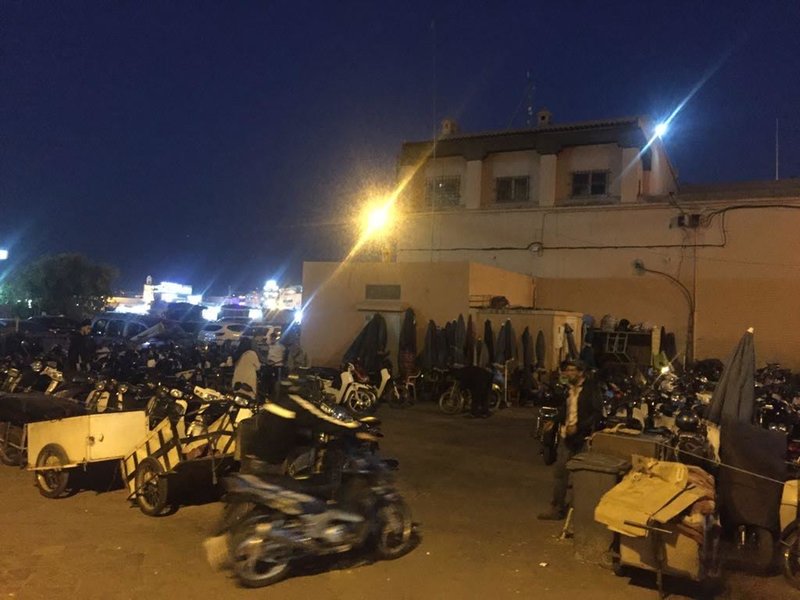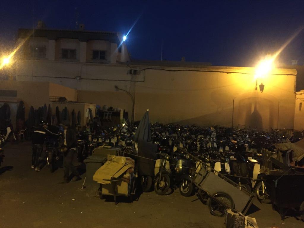 وتظهر الصور براريك عشوائية و عربات مجروة و ازبال خلف مقر الشرطة السياحية بساحة جامع الفنا، بعدما اهمل المجلس الجماعي للمدينة تحديد مجال اشتغال موقف للدرجات النارية والذي تمدد بشكل كبير، وصار يحتل مساحة كبيرة وسع معها العاملون في الموقف نشاطهم وصاروا يستقبلون العربات المجرورة الى جانب الدرجات ما تسبب في تشويه المنظر العام و خنق الممر المحادي الذي يعتبر احد اهم مداخل الساحة .