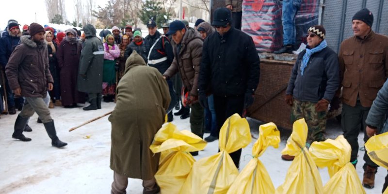 Dans cette optique, une cinquantaine de bergers enclavés dans la zone des Koudiates dans le pachalik d’Ifrane ont bénéficiés Jeudi dernier de Kits de denrées alimentaires et de couvertures. Le même nombre de bergers nomades ont bénéficié la nuit du même jour des mêmes kits dans la zone d’Imjaouj près de Habri relevant de la commune rurale de Bensmim.