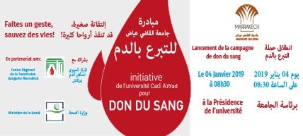 La nouvelle campagne du Don du Sang lancée à la Présidence de l’université se poursuivra tout au long de l’année dans les établissements de l’Université à Marrakech, Safi, Essaouira et El Kelaa des Sraghna, selon un programme annuel préétabli.