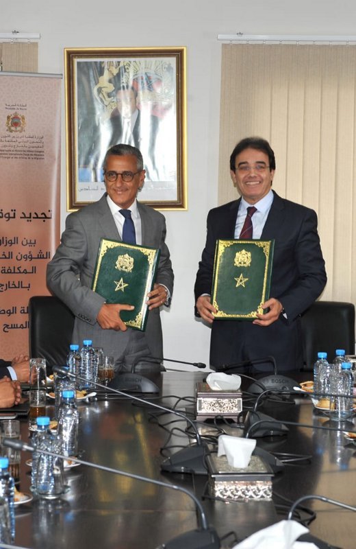 Lundi 01 juillet 2019 ; le Ministre Délégué chargé des marocains résident à l’étranger et des affaires de la migration ; Mr Benatiq Abdelkrim et le Directeur Général de L’Agence Nationale de la Conservation Foncière, du Cadastre et de la Cartographie (ANCFCC) ; Karim Tajmouati ont signé une convention de coopération portant sur le renouvellement du cadre de partenariat visant la promotion des services digitalisés au profit des Marocains résident à l’étranger.