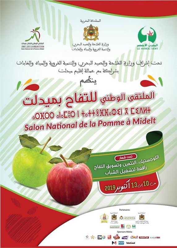 Le Salon National de la pomme de Midelt dans son édition 2019 aura lieu, du vendredi 10 au Dimanche 13 octobre prochain, sous le thème de : « La logistique, la valorisation et la commercialisation de la Pomme : Levier pour la promotion de l’emploi des jeunes », apprend-t-on auprès des organisateurs.